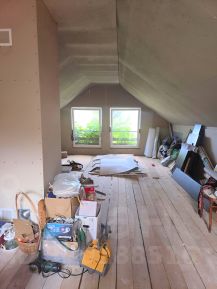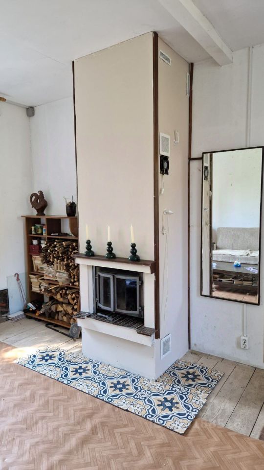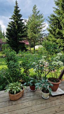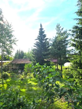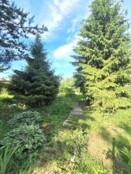 Помимо прекраснейших деревьев, конечно же на участке есть дом и летняя кухня, в которой можно и готовить и жить. У летней кухни есть своя терраса. Дом каркасный, утеплитель 150, можно жить и зимой, сделан первый этаж: большая кухня-столовая с камином, спальня, отдельно зона готовки и прихожая. Много больших окон, двухкамерные стеклопакеты, дом светлый, можно мыть посуду и смотреть на огромные ели! А так же пристроена просторная терраса с которой вход на второй этаж. Второй этаж не доделан - свободное пространство с большими окнами.
