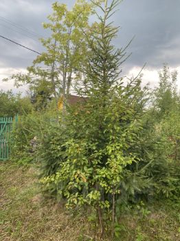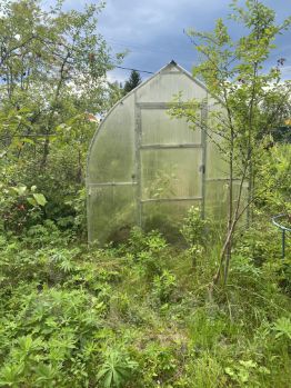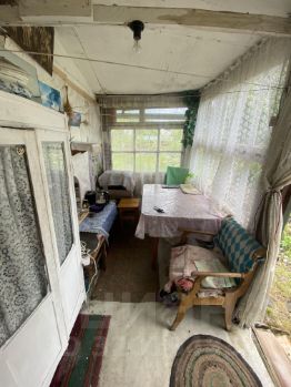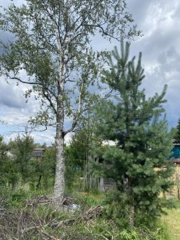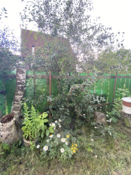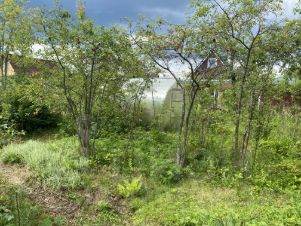 Участок очень зеленый, растут березы, сосновые и фруктовые деревья (яблони и слива), есть ягодные кусты. На территории стоит старый дом, который можно использовать как временное жилье на период строительства нового дома. Также есть небольшая теплица для овощей. Подключено электричество. Вода на участке отсутствует — есть возможность бурения скважины или пользование колонкой с питьевой водой, которая находится около участка (600 метров).