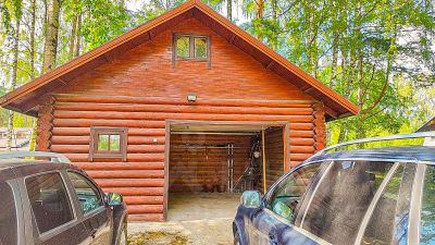 В продаже представлен: дом из цилиндрового бруса (проект Хонка "Большой принц"), отдельно стоящий гараж, хоз/постройки, и земельный участок.