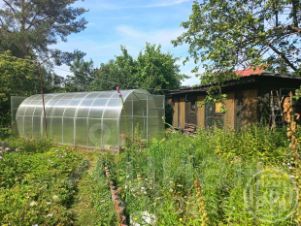 Участок: огорожен, откатные ворота, много плодово-ягодных, декоративных и хвойных растений, яблони, груша, слива. Хозблок, включающий в себя: душ, биотуалет, летнюю кухню, мастерскую и помещение для хранения инвентаря. Большая новая теплица. На участке летний водопровод.