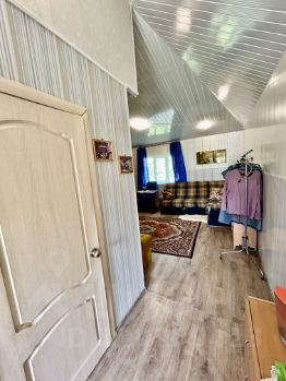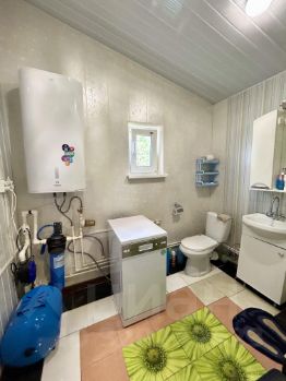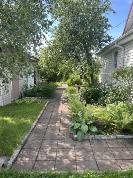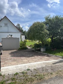 Дом S=74 кв м, часть дома из бруса , обложена кирпичом (гп 2004), на ленточном фундаменте, часть дома каркасно-щитовая с утеплением, на сваях (гп 2015), обшит сайдингом.