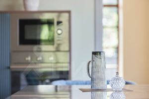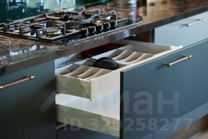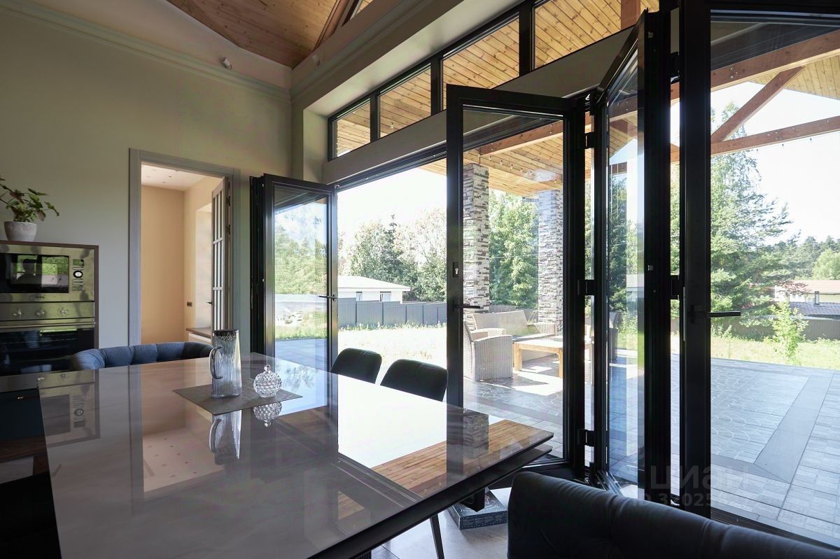 Кухня-гостиная с вторым светом, выходом на террасу 36 м², кухонный гарнитур с немецкой встроенной техникой и островом для барных стульев