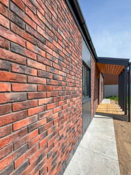 -стены газобетон D400, фасадное утепление 50мм, декоративный кирпич WhiteHills