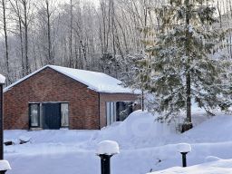 Стены из газобетонных плит с утеплителем гарантируют тепло и комфорт в любое время года. Фасад отделан кирпичом.
