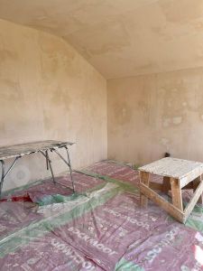 дом без ремонта, частично отштукатурены стены. В доме 4 спальни (10+13+16+10), гардеробная, большая кухня-гостиная с выходом на террасу, 2 сан.узла.