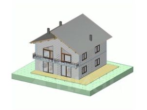 Фундамент дома - ж/б плита 300 мм, под ней "подушка", распределяющая нагрузку, 500 мм с утеплителем;