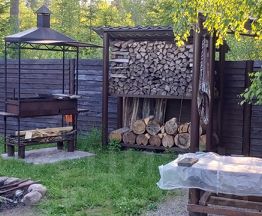 На смежном участке хозблок 3*6 и павильон для отдыха 9*5 постройка 2015г. на бетонной монолитной плите. Стены бревно 30см, снаружи утепление джут. Можно оборудовать под жилое помещение. Двери в доме и в павильоне металлические польской фирмы GERDA.