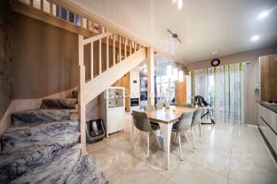 Дом построен в 2017 году, имеет общую площадь 181,4 кв. м и пять комнат, что позволяет комфортно разместить большую семью. Жилая площадь составляет 76,7 кв. м, а кухня — 16,5 кв. м. Высота потолков 2,54 м создаёт ощущение простора. Дом имеет два этажа и построен по каркасной технологии, перекрытия — деревянные. Отопление обеспечивается индивидуальным котлом, что позволяет регулировать температуру в доме по своему усмотрению.