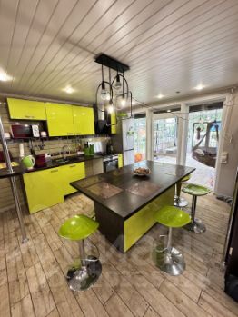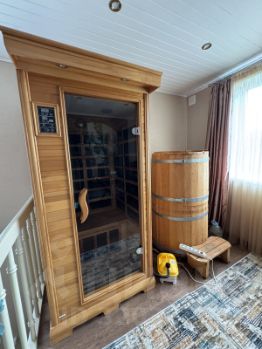 Красивый большой жилой дом площадью 170 м2 с роскошной закрытой террасой 20 м2 и комфортабельный двухэтажный гостевой дом площадью 69 м2, построенный с душой и заботой о комфорте каждого члена семьи.