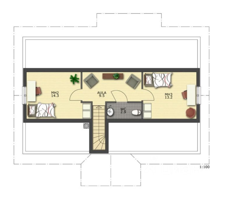 Спальня 3 (мансарда) — 12.9 м²