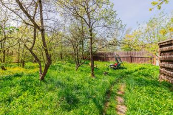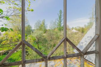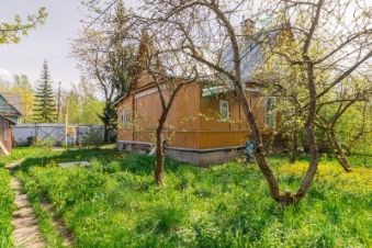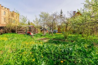 Участок ровный, сухой, с плодовыми деревьями и кустарниками (яблони, слива, облепиха, смородина, малина) и цветником. Огорожен забором. Есть выровненная площадка под парник (сейчас разобран). Небольшой сарай.