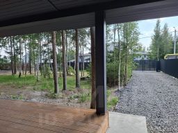 Поселок рядом с лесным хвойным массивом.