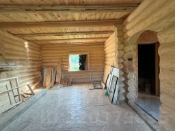 o Материал стен: Рубленное бревно, наружная поверхность окрашена, внутренняя сторона отшлифована.