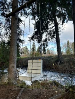 Большая детская площадка, собственный пляж с лежаками и качелями Мост над рекой, мини водопад с прудом, волейбольная и футбольный площадки. За территорией поселка имеется лесное озеро оборудованное пандусом и карьер для любителей погонять на внедорожной технике