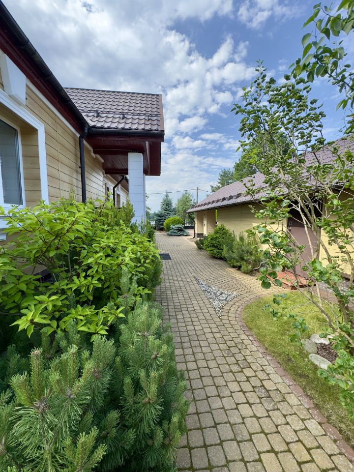 Дом облицован южнокорейскими панелями с высокой степенью сохранения тепла. Надёжная крыша из металлочерепицы с эффективными снегодержателями установлена на всех строениях. Также реализована современная система грозо и молниезащиты.