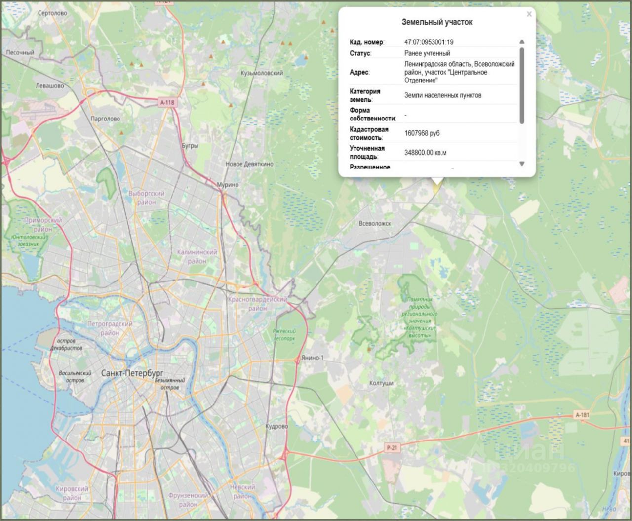 кадастровый номер : 47:07:0953001:19