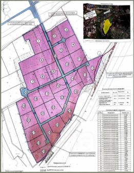Согласно проекту межевания возможно разделение территории на 30 участков. По этому проекту предусмотрены дороги и проезды с разворотными площадками для движения грузовых машин. Ширина дорог 18 и 14 метров. Ширина проезжей части 7 и 10,5 метров.