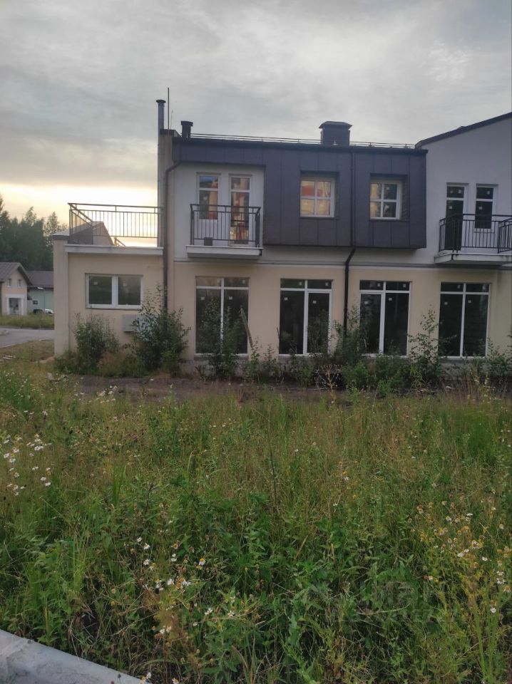 Секция таунхауса - торцевая, с одной стороны - соседи, с другой - котельная, на крышу которой площадью около 20 кв.м. имеется выход со второго этажа таунхауса. Таким образом, она используется в качестве дополнительной террасы. Перед входом достаточно места для парковки двух автомобилей. Противоположные окна выходят на небольшую рощицу и соседний поселок. К таунхаусу относятся 2 земельных участка перед входом и с обратной стороны общей площадью примерно 45 кв.м. Установлены счетчики воды и электричества. Газ предусмотрен, но пока не подключен.
