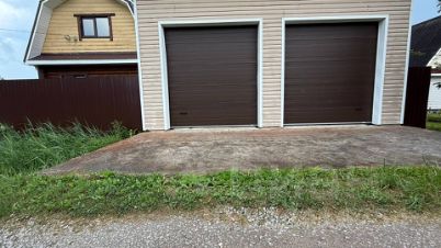 Гараж: из газобетона на плите, 87 м, обшитый сайдингом, с двумя подъёмными воротами (3 м)