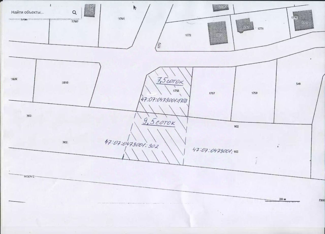 Перспективный участок в обжитом посёлке! В собственности 2 участка: один - 7,5 соток (единоличная собственность) и к нему примыкает участок 9,5 соток (это долевая собственность от совместного участка в 1,5 ГА). Итого участок общей площадью 17 соток! Хватит места и для дома, и для беседки с шашлыком, и для теплиц с закусками. Современный посёлок с закрытой территорией, своими дорогами, освещением, видеонаблюдением, детской площадкой, стадионом, водопроводом, охраной и вывозом мусора. Есть общий чат поселка, где обсуждаются насущные вопросы жизни сообщества. Электричество 15 кВт, прямой договор с Ленэнерго. Круглогодичный водопровод от двух скважин подведён к участку. Газ к посёлку подведут осенью 2025года, трубы по посёлку уже проложены. Около посёлка расположено кольцо 434 маршрутки, которая идёт до м.Просвещения. Долгов и обременений нет. Один собственник. Вся сумма в договоре. Звоните, с удовольствием расскажу, покажу, проведу сделку!