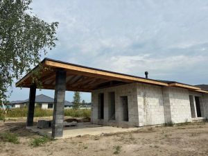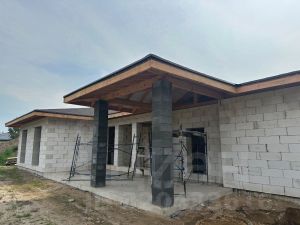 Начинаются работы по внешней отделке, в объявлении есть фото, как дом будет выглядеть в финальном варианте (в поселке есть уже готовые такие же дома, которые можно посмотреть, как пример)