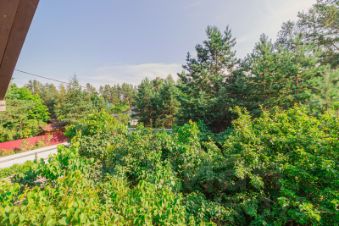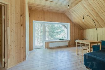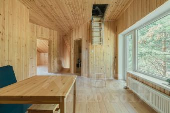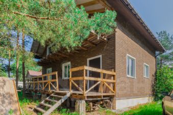 Частично отделан. Первый этаж- декоративная плитка под камень и штукатурка под покраску по стенам. Второй этаж- помещения обшиты вагонкой из хвойных пород деревьев. Полы- лиственничная паркетная доска. Двухкамерные стеклопакеты. На втором этаже- панорамное окно с видом на сосновый лес. В доме два санузла- на первом этаже большой совмещенный, с душевой кабинкой(отделан керамогранитной плиткой, потолок-алюминиевый профиль)подводка под ванну, на втором-гостевой туалет(оборудование не установлено, подводка вся есть).