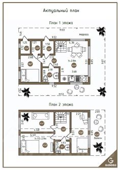 • Первый этаж: просторная кухня-гостиная, спальня с гардеробной, санузел.