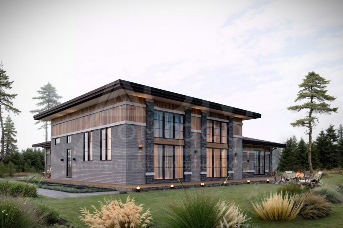 Фундамент монолитная плита, стены - монолитный полистеролбетон, с превосходной тепло и шумоизоляцией выполненный в соответствии с ГОСТ 33929-2016 , внешняя отделка - лиственница, искусственный камень и клинкерная плитка, крыша- мягкая черепица.