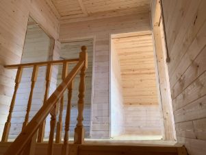 - Внутри отделан имитацией бруса из хвойных пород, что создает уютную атмосферу и приятный запах нового деревянного дома.