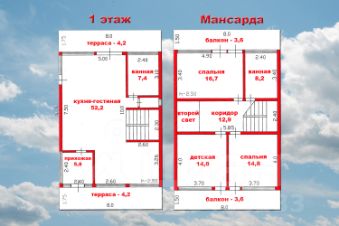 - Полы: керамогранит (1 этаж), ламинат (2 этаж).