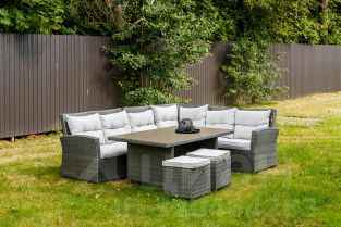 - Обеденная зона с керамическим столом на 12 персон идеально для семейных ужинов и праздников.