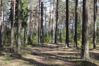 Предлагаемый участок в конце поселка, за забором сосновый лес.