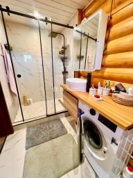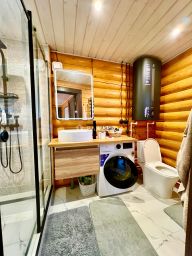 Общая площадь дома составляет 110 кв. м, из которых 38 кв. м — жилая площадь. Просторная кухня площадью 34 кв. м станет местом для семейных ужинов и дружеских посиделок. Дом оборудован всем необходимым для комфортного проживания: электричеством, канализацией, водоснабжением из скважины, а также электрическим отоплением.