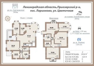 Представляем Вам двухэтажный жилой дом площадью 343,6 м² с двумя участками в прямой продаже!