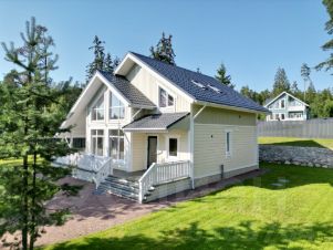 — Наружная отделка дома имитация бруса, окрашена Tikkurila.