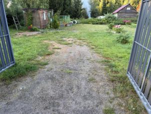 По участку проделано множество работ. Убраны старые постройки. Выкопана канава по периметру. Было привезено около 8 камазов земли для выравнивания. Посажены ели как живая изгородь. Стоят ворота. Есть бытовка. На самом участке поставлен столб, для удобства распределения электричества на будущие постройки. Все документы в порядке.