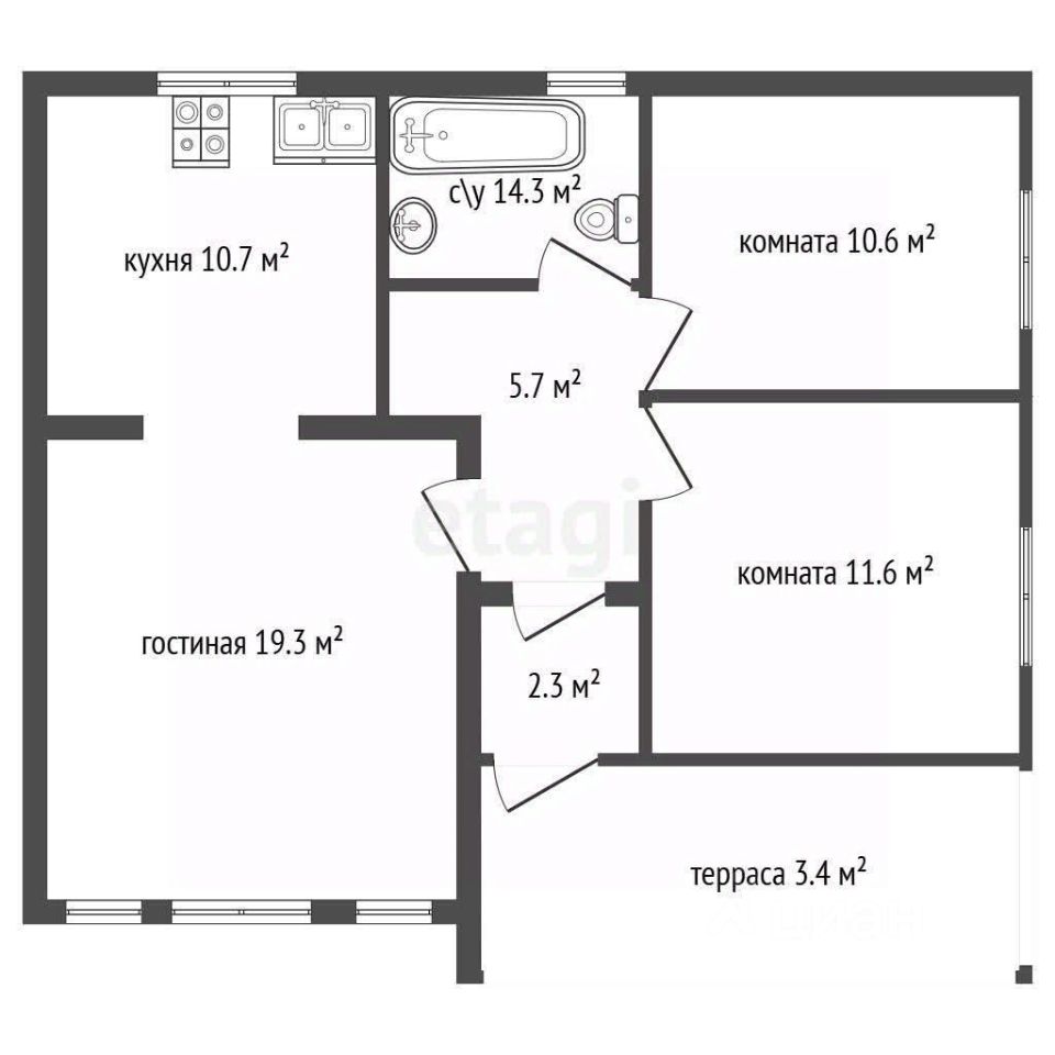 Внутри вы найдете современную отделку: полы из ламината 33 класса, керамогранитный санузел с оборудованной сантехникой и скрытую электрику. Межкомнатные двери добавляют завершенности интерьеру.