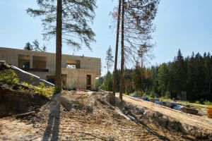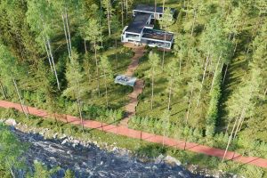 Для увеличения уровня комфорта дом разделен на три функциональных юнита: спальный, жилой и хозяйственный (технический). В технической (хозяйственной) части сосредоточено все для благополучного функционирования дома: гараж, котельная, кладовая, помещение для персонала и т.д. Жилая часть представляет собой простор и комфорт: кухня-столовая площадью, гостиная, кабинет (гостевая комната), а также спа-зона. Спальная часть включает четыре просторных спальни с гардеробными, гостевая спальня и великолепный вид из окон на реку и сосновый лес.