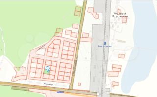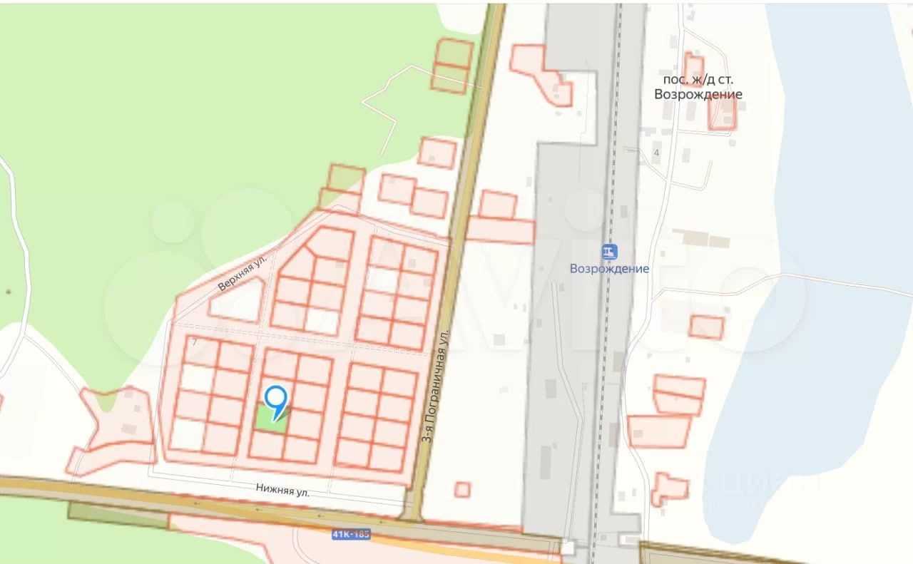 Участок находится рядом с ж/д станцией Возрождение, в живописном месте между трёх озёр.