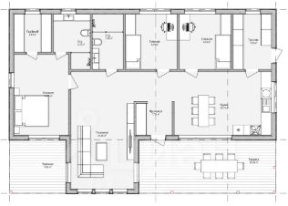 Просторная зона кухни-столовой и гостиной с панорамными окнами, 3 спальни, 2 санузла, гардеробная, прихожая, техническое помещение.