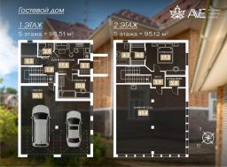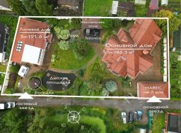 Также на участке расположен двухэтажный гостевой дом 190 кв.м., идеально подходящий для размещения гостей и создания творческого или спортивного пространства.