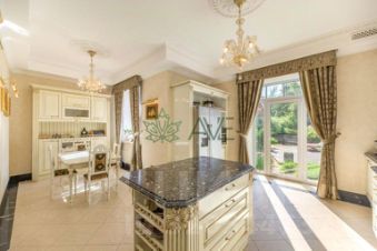 В отделке использованы лучшие европейские бренды, на потолках лепнина ручной работы. Люстры и бра венецианское стекло. Эксклюзивное освещение дома создает атмосферу уюта и элегантности в любое время суток.