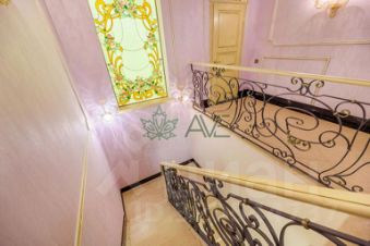 Лестница на второй этаж отделана мрамором. Над лестницей витраж с подсветкой.