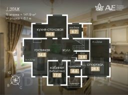 - Мастер-спальня с гардеробной и санузлом, зимний сад с панорамными окнами, где установлена приточно-вытяжная вентиляция с увлажнением, кладовая.
