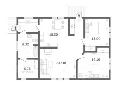 Одноэтажный дом площадью 89 метров вмещает в себя две спальни (13 м и 14 м), кухню гостиную с камином (40 м), а также ванную комнату, коридор, бойлерную и техническое помещение