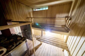 Баня построена по старинной технологии с комфортной зоной отдыха и террасой.