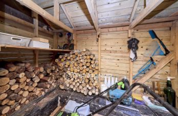 Отдельно расположен капитальный сарай для хранения садового инвентаря и дров.