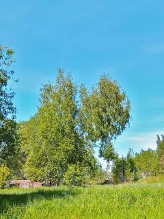 На участках растут берёзы и сосны