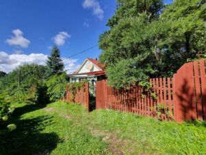 Так же в верхней части участка имеется недостроенный дом на фундаменте.(на фото за красным забором, серый) Но был жилым.