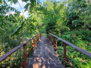 Участок соединён деревянным мостиком, что делает его необычным и симпатичным!